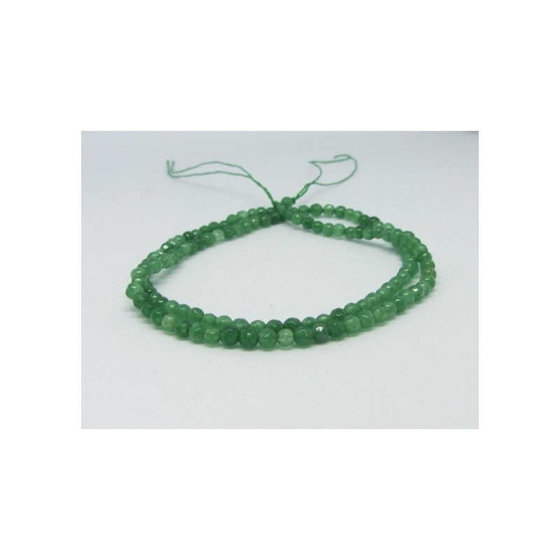Runde facetslebne perler af grøn agat. Str. på perler: ca. 10 mm. Hulstr.: ca. 1 mm. Antal på streng: ca. 38 stk. Prisen er for 1 streng.