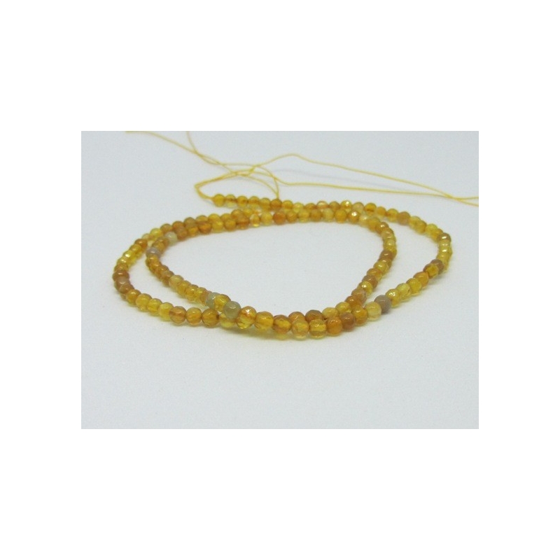 0Facetslebne runde perler af agat - grøn. Str.: ca. 3 mm. Antal på streng: ca. 120 stk. Hul str.: ca. 0,7 mm. Prisen er for 1 streng.