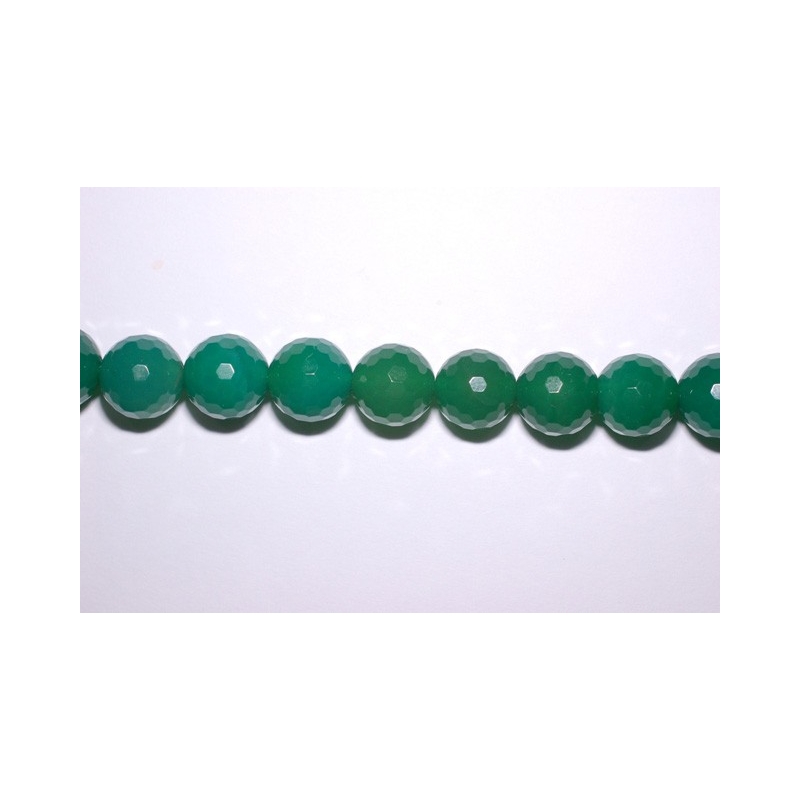 Runde facetslebne perler af grøn agat. Str. på perler: ca. 12 mm. Hulstr.: ca. 1,5 mm. Antal på streng: ca. 32 stk. Prisen er for 1 streng.