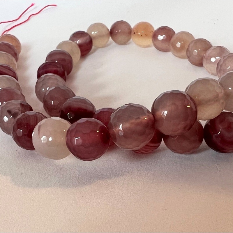 Runde facetslebne perler af rød agat. Str. på perler: ca. 12 mm. Hulstr.: ca. 1 mm. Prisen er for 4 stk.