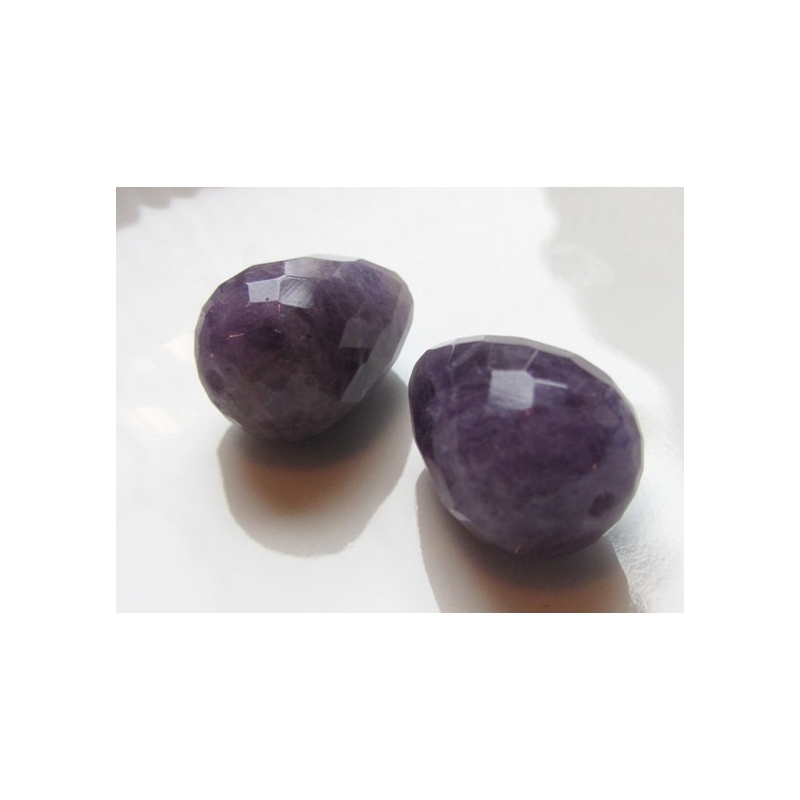 Facetslebne dråber af ametyst. Dråberne er sideboret. Bemærk at de er håndlavede, så de vil derfor ikke være ens Str.: ca. 5-7 x 7-10 mm. Hul. str.: ca. 0,5 mm. Prisen er for 2 stk