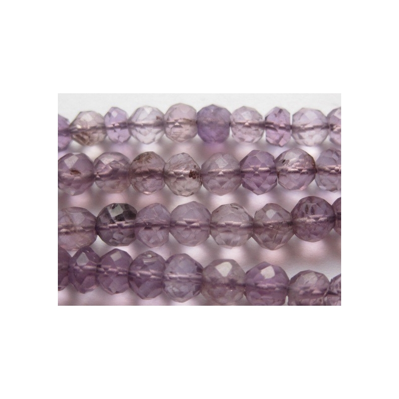 Facetslebne perler af ametyst. Str.: ca. 3-4 x 5-6 mm. Antal på streng: ca. 110 stk. Prisen er for 1 streng
