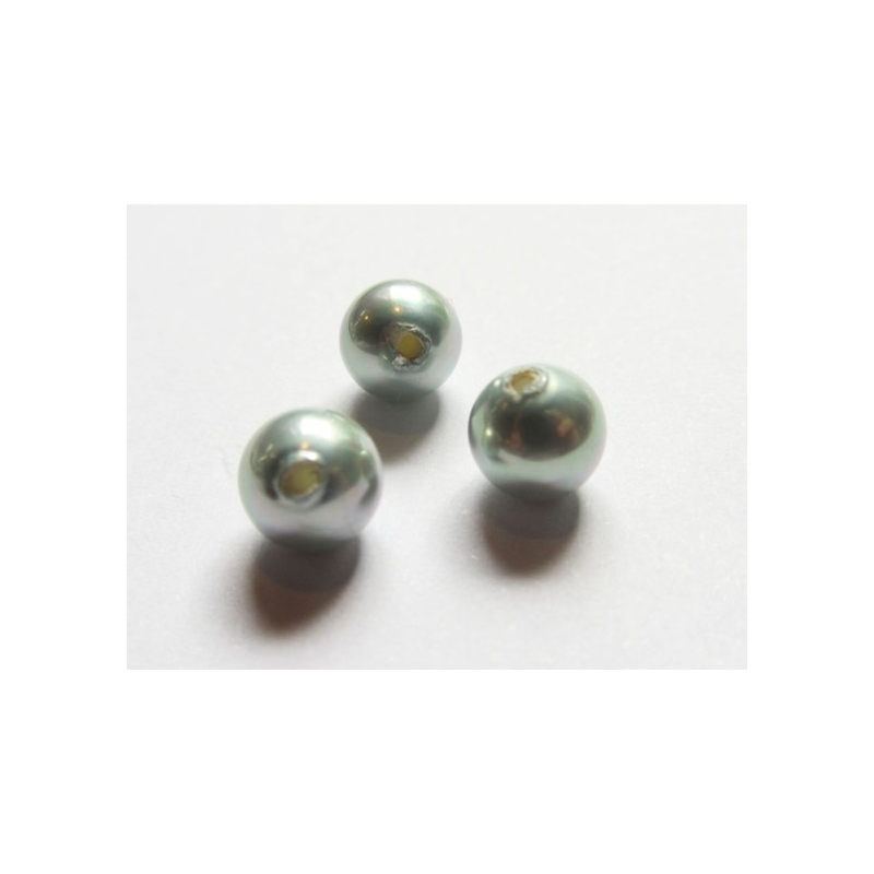 Anborede runde perlemors perler - blå-grå. Passer naturligvis til vores finger-ringe og ørestikkere.