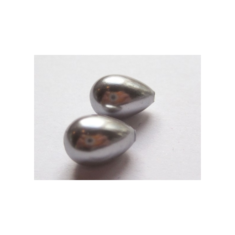 Dråbeformede anborede perler af sølvfarvet perlemor.