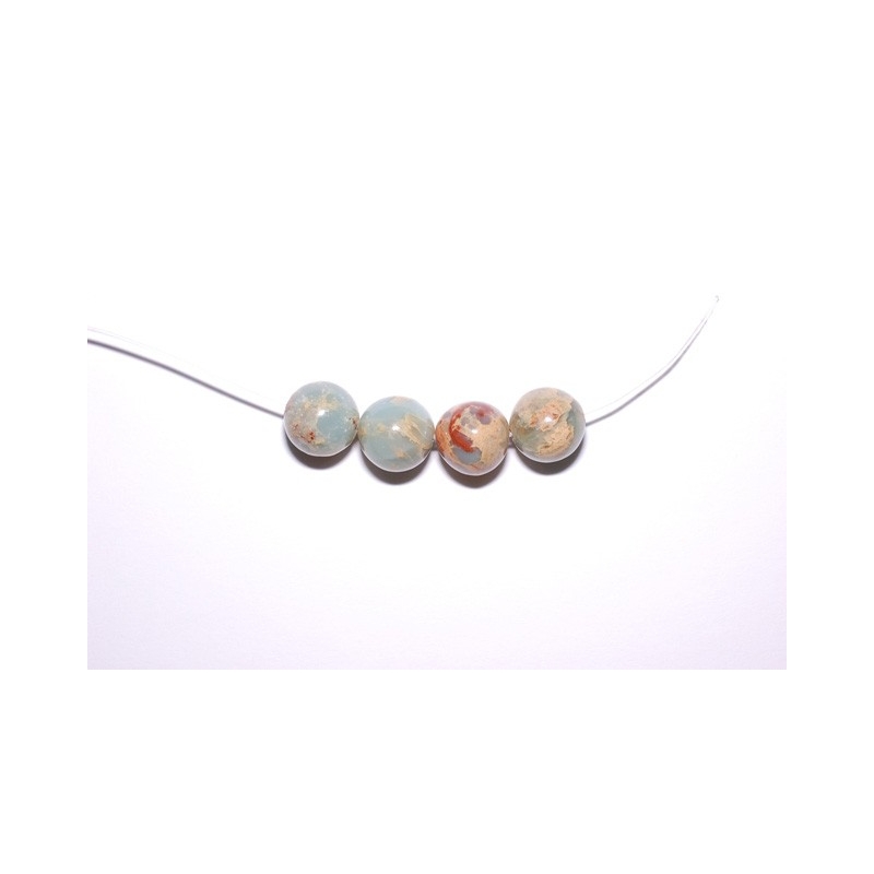 Runde perler af aqua terra jasper. Str.: ca. 8 mm. Hulstr.: ca. 1,1 mm. Prisen er for 6 stk.