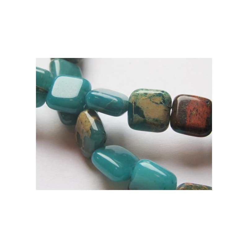 Flade firkantede perler af aqua terra jasper.