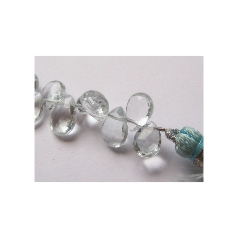 Facetslebne dråber af aquamarin. Dråberne er sideboret. Bemærk at de er håndlavede, så de vil derfor ikke være ens Str.: ca. 4 x 7 mm. Hul. str.: ca. 0,5 mm. Prisen er for 2 stk.