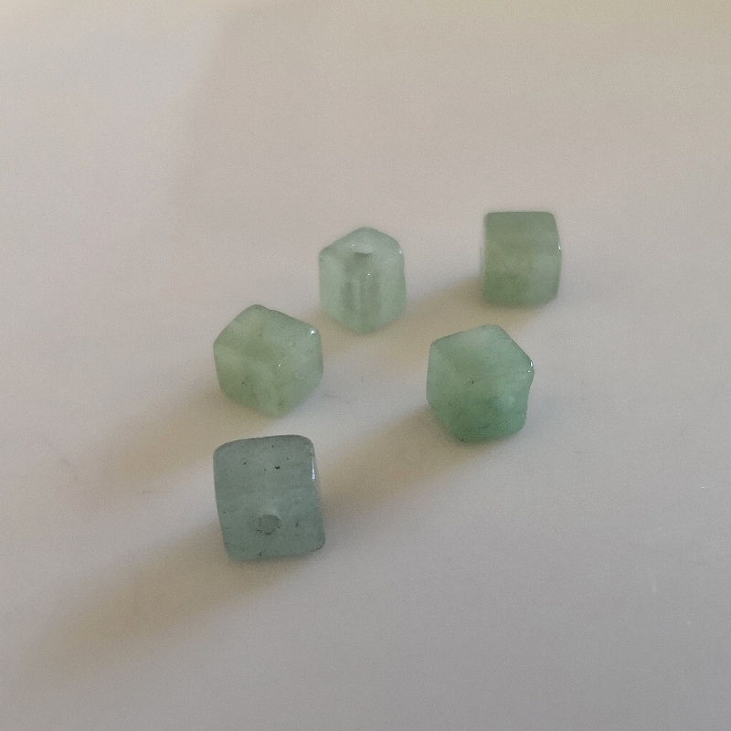Grønne blomster af aventurin. Str. på blomst: ca. 2 x 8 mm. Hulstr.: ca. 0,7 mm. Prisen er for 2 stk.