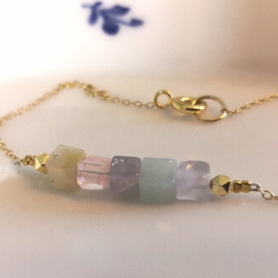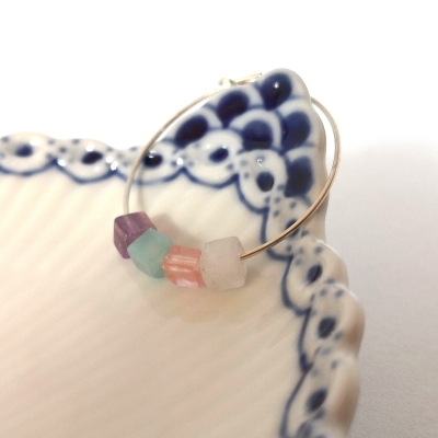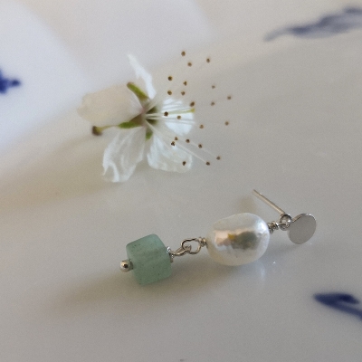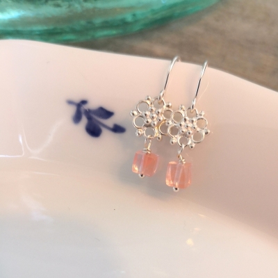 Råhvide blomster af aventurin. Str. på blomster: ca. 2 x 10 mm. Hulstr.: ca. 0,5 mm. Prisen er for 2 stk.