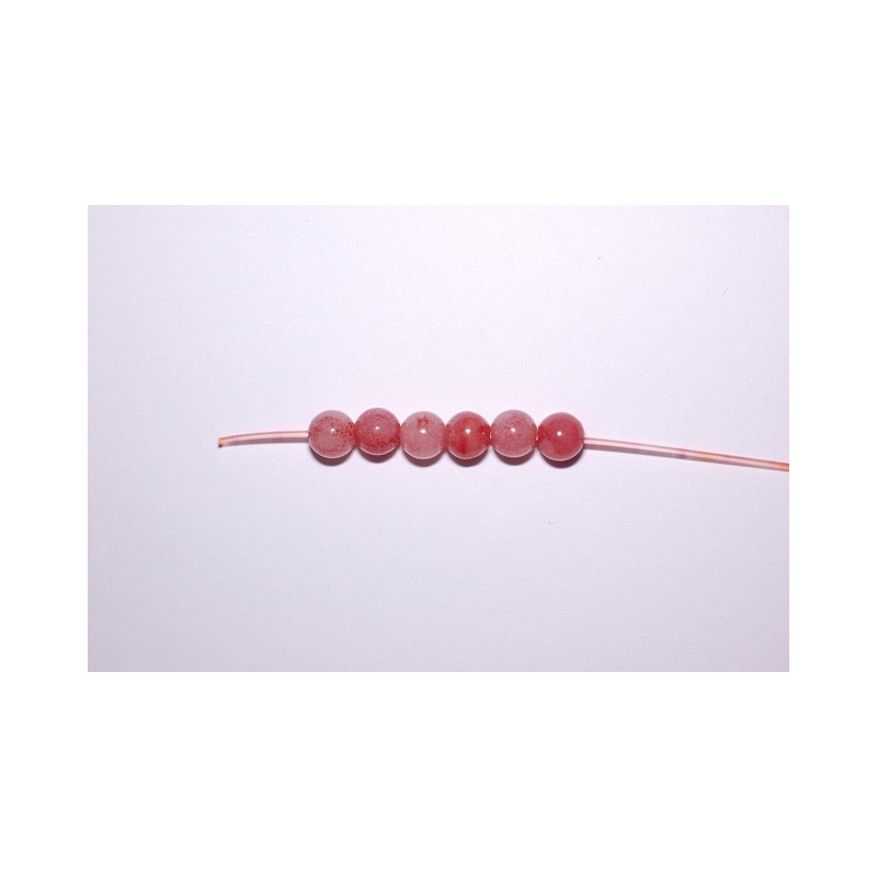 Runde perler af pink aventurin. Str. på perler: ca. 6 mm. Hulstr. ca. 1 mm. Antal på streng: ca. 65 stk. Prisen er for 1 streng.