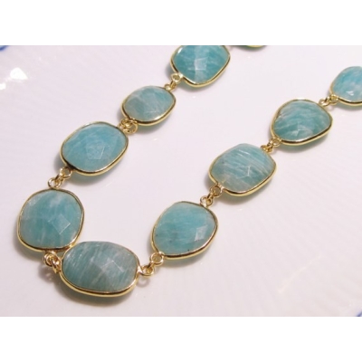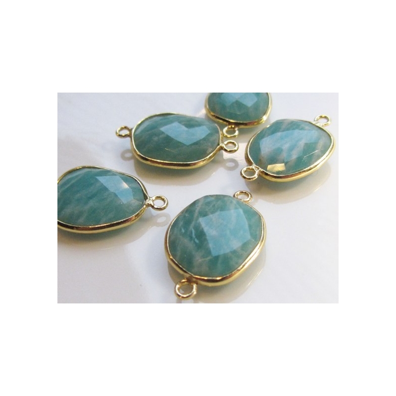 Superflotte bezel vedhæng - med lækre indiske håndlavede forgyldte sølvindfattede facetterede blå amazonit - er ens på begge sider.