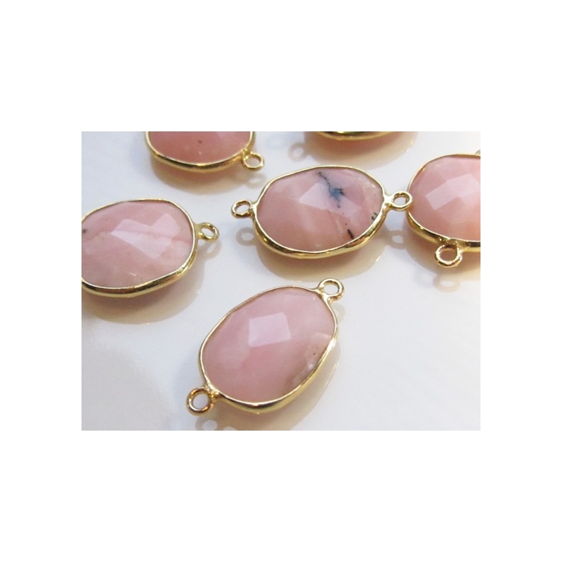 Superflotte bezel vedhæng - med lækre indiske håndlavede forgyldte sølvindfattede facetterede pink opal - er ens på begge sider.
