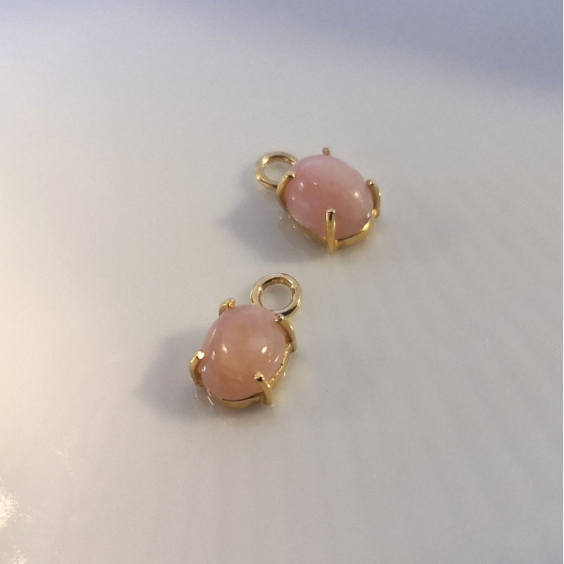 Indisk håndlavet sølvindfattet bezel vedhæng af pink opal. Str. ca. 6 x 9 mm. Str. incl. øjet ca. 6 x 12 mm. Hul str. i øje ca. 2,5 mm. Prisen er for 1 stk.