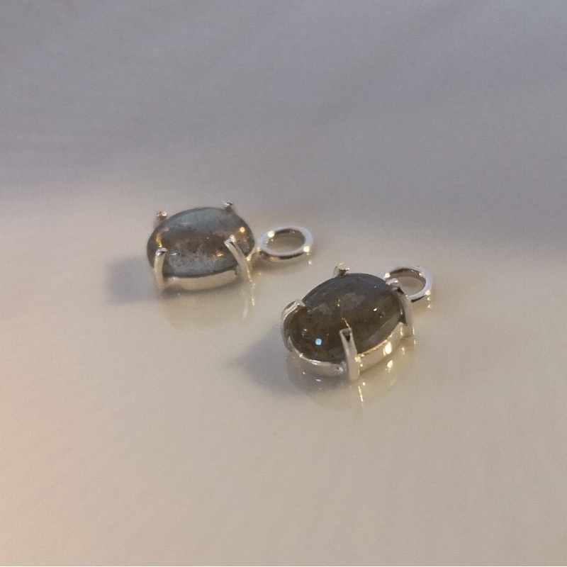 Superflotte bezel vedhæng - lækre indiske håndlavede sølvindfattede labrodorit - er ens på begge sider. Str. ca. 9 x 13 mm. Tykkelse - ca. 4 mm. Hul str. i øje ca. 1,5 mm. Prisen er for 1 stk.