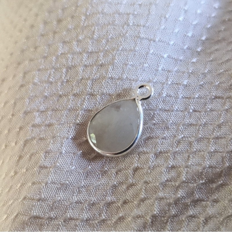 Dråbe formet facetslebet bezel vedhæng - indisk håndlavet sølvindfattet månesten - er ens på begge sider.