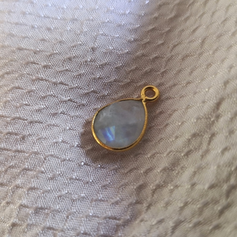Dråbe formet facetslebet bezel vedhæng - indisk håndlavet sølvindfattet månesten - er ens på begge sider. Str. ca. 9 x 11 mm. (9 x 14 inkl. øje) Tykkelse - ca. 4 mm. Hul str. i øje ca. 1,5 mm. Prisen er for 1 stk.