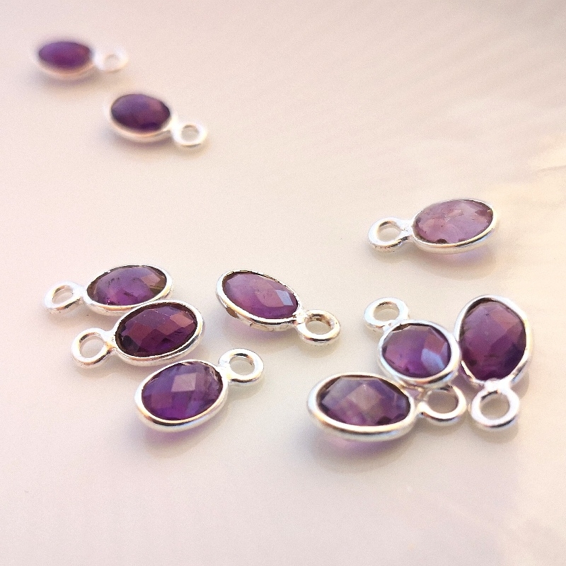 Dråbe formet facetslebet bezel vedhæng - indisk håndlavet sølvindfattet ametyst - er ens på begge sider.