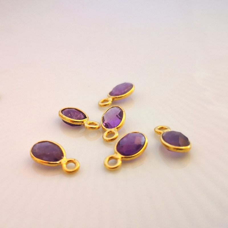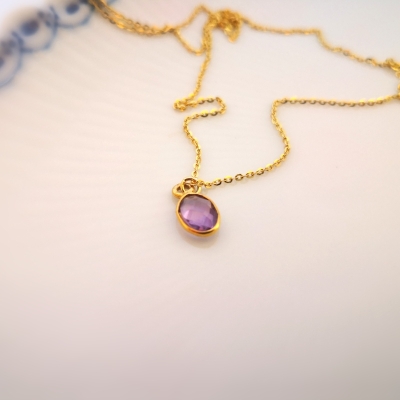 Dråbe formet facetslebet bezel vedhæng - indisk håndlavet forgyldt sølvindfattet ametyst - er ens på begge sider.