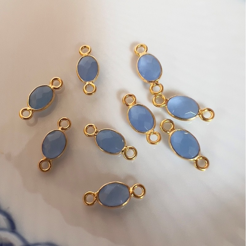 Bezel vedhæng - indisk håndlavet forgyldt sølvindfattet facetteret blå chalcedon - er ens på begge sider.