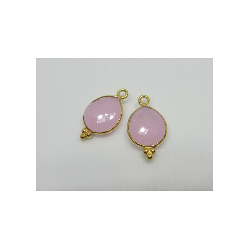 Dråbe formet bezel vedhæng - indisk håndlavet forgyldt sølvindfattet pink chalcedony - er ens på begge sider.