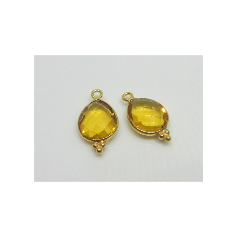 Dråbe formet bezel vedhæng - indisk håndlavet forgyldt sølvindfattet citrin quartz - er ens på begge sider.
