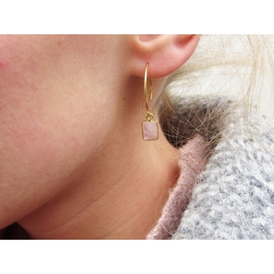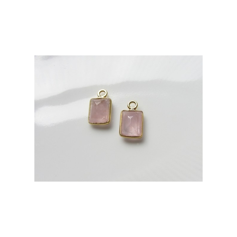 Superflot rektangulær indisk håndlavet forgyldt sølvindfattet bezel vedhæng af rosa quartz.