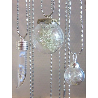 Bobbels vedhæng - fyld selv din "glas-bobbel" med din favorit ting og lim toppen på. I inspirationsbilledet - har vi anvendt vores kuglekæde (kad200). Str. på kugle ca. 15 x 16 mm. Str. med top ca. 22 x 16 mm. Hul str. ca. 4 mm. Prisen er for 1 stk.