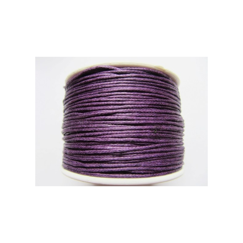 Vokset bomulds snor - lilla. Tykkelse - ca. 1 mm. Prisen er for 1 rulle med ca. 90 meter.