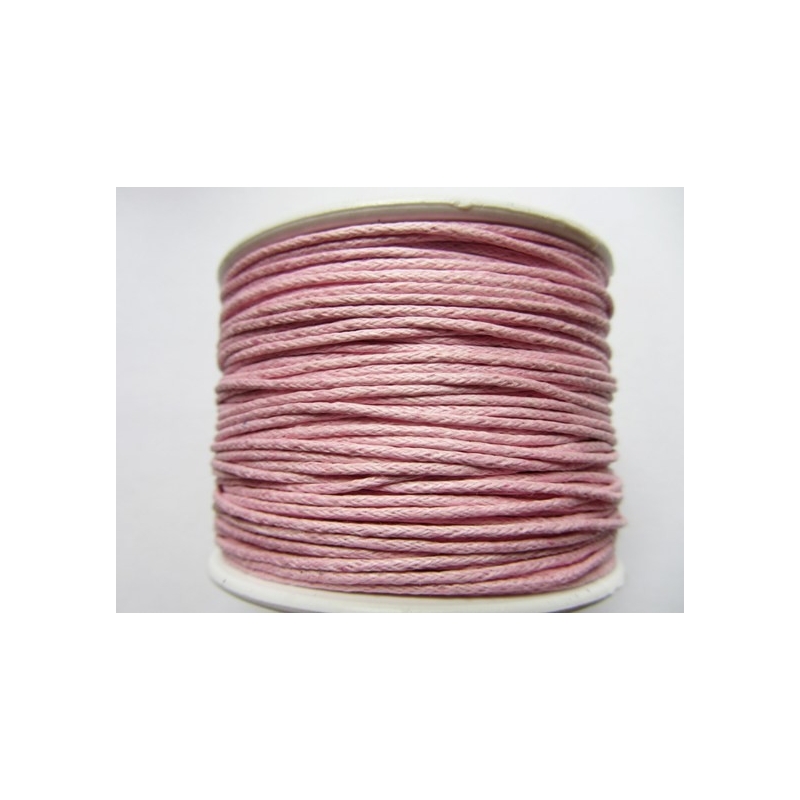 Vokset bomulds snor - lyserød. Tykkelse - ca. 1 mm. Prisen er for 1 rulle med ca. 90 meter.