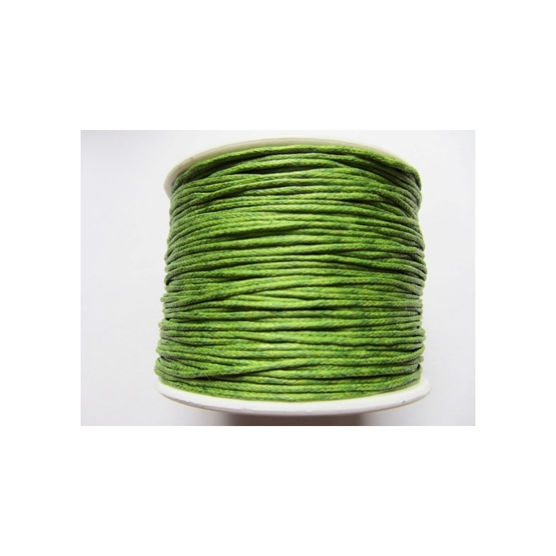 Vokset bomulds snor - grøn. Tykkelse - ca. 1 mm. Prisen er for 1 rulle med ca. 90 meter.