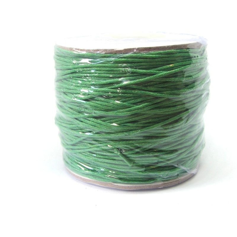 Vokset bomulds snor - grøn. Tykkelse - ca. 1 mm. Prisen er for 1 rulle med ca. 90 meter.