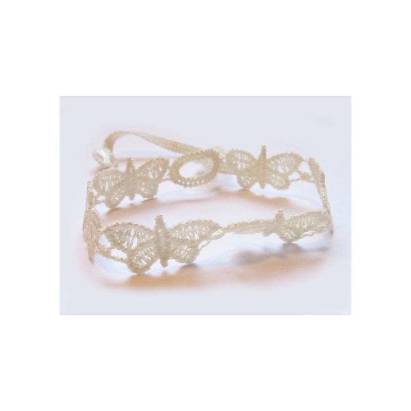 Broderi armbånd - sommerfugl motiv - hvid.