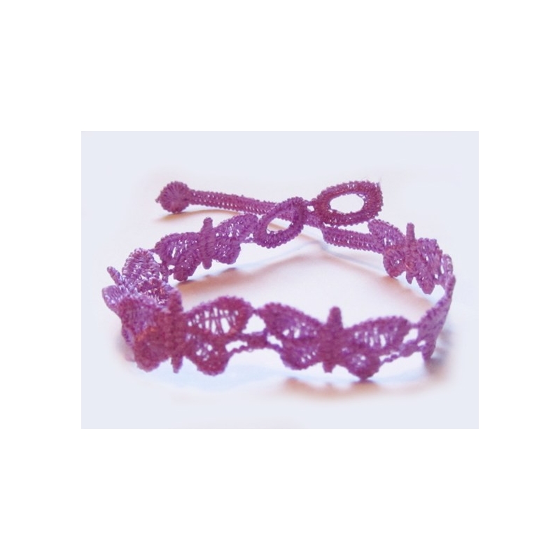 Broderi armbånd - sommerfugl motiv - lys lilla.
