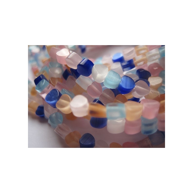 Hjerter af cat eye perler - streng med forskellige farver.