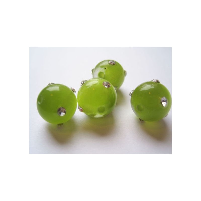 Runde grønne cat eye perler med similisten.