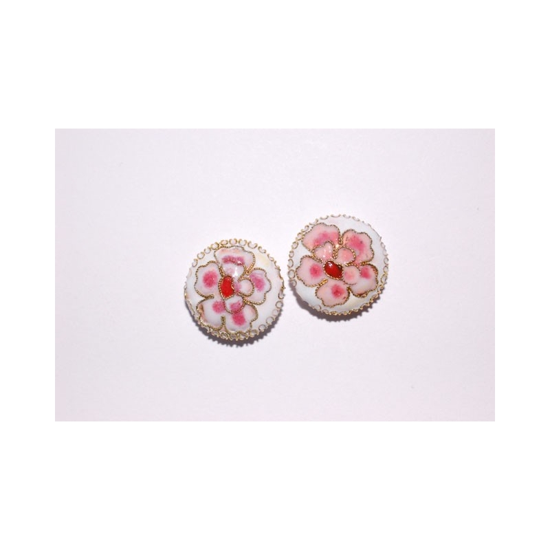 Runde cloisonne perler - hvid. Str. ca. 16 mm. Hulstr. ca. 1,2 mm. Prisen er for 4 stk.