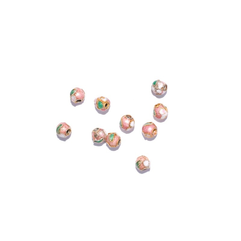 Runde cloisonne perler - guldfarvet. Str. ca. 5 mm. Hulstr. ca. 1,2 mm. Prisen er for 10 stk.