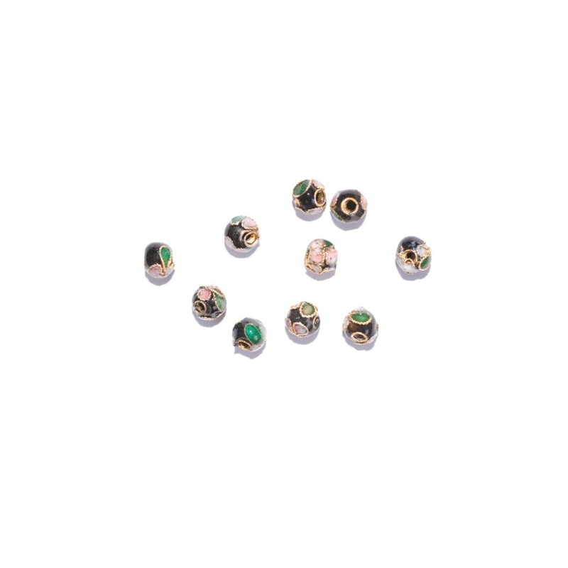 Runde cloisonne perler - sort. Str. ca. 10 mm. Hulstr. ca. 1,2 mm. Prisen er for 4 stk.