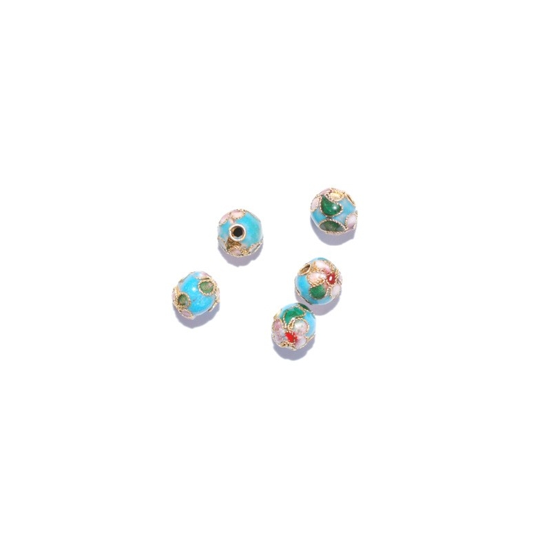 Runde cloisonne perler - blå. Str. ca. 5 mm. Hulstr. ca. 1,2 mm. Prisen er for 10 stk.