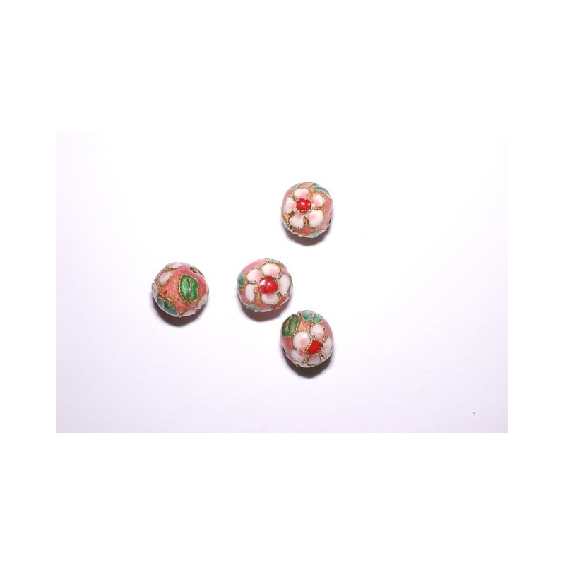 Runde cloisonne perler - koralfarvet. Str. ca. 10 mm. Hulstr. ca. 1,2 mm. Prisen er for 4 stk.