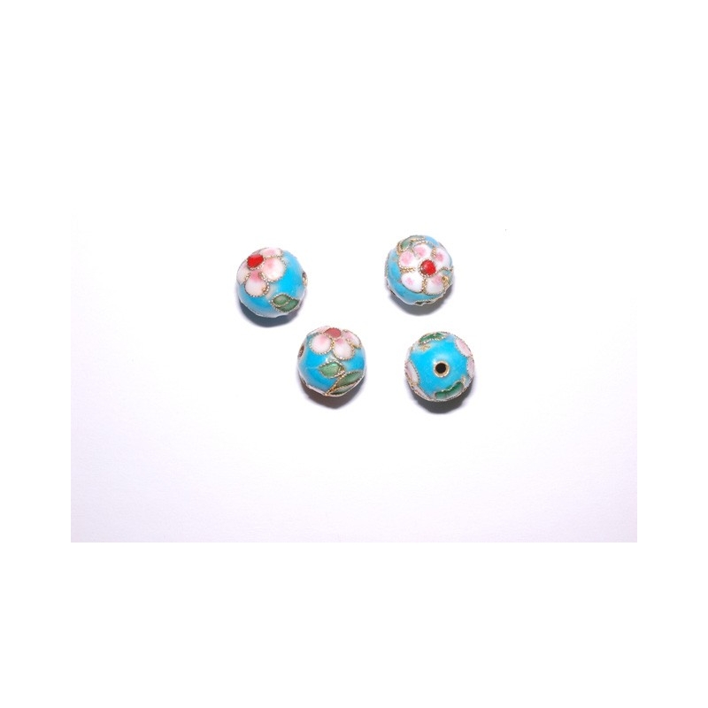 Runde cloisonne perler - blå. Str. ca. 16 mm. Hulstr. ca. 1,2 mm. Prisen er for 4 stk.