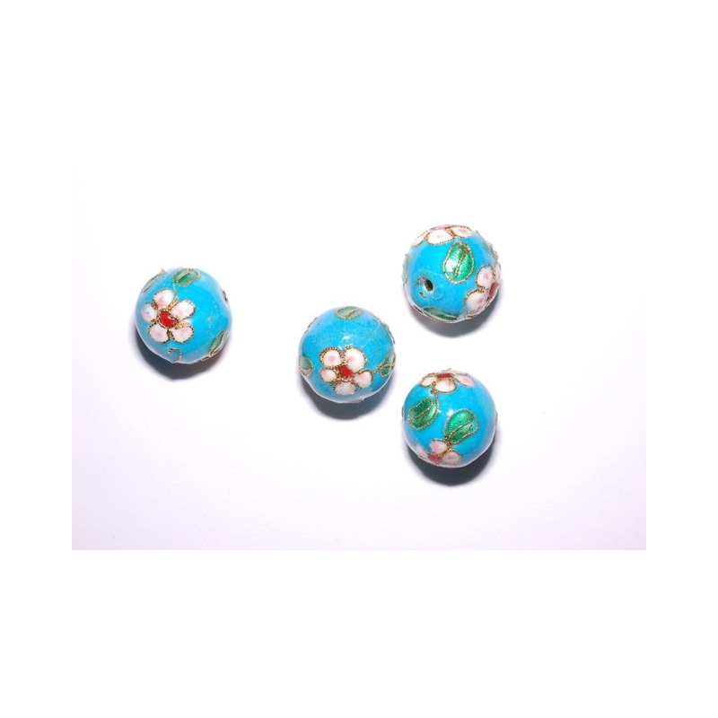 Runde cloisonne perler - guldfarvet. Str. ca. 12 mm. Hulstr. ca. 1,2 mm. Prisen er for 4 stk