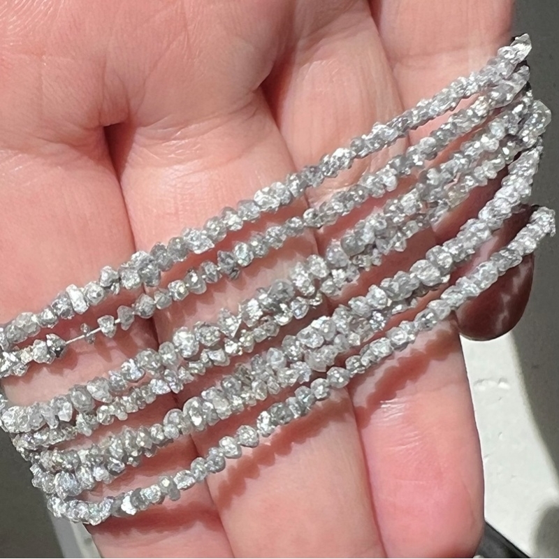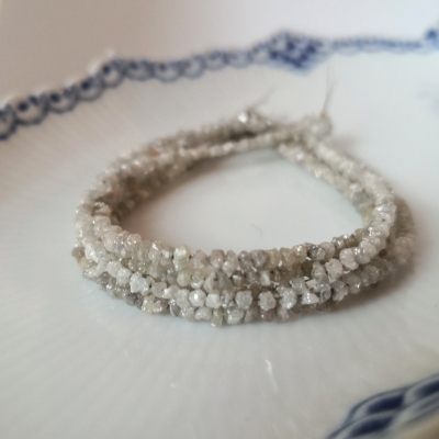 Ægte rådiamanter - lysegrå. Str. ca. 2-2,5 x 1,5-2 mmm. Hul str. ca. 0,3 mm. Prisen er for 10 stk.