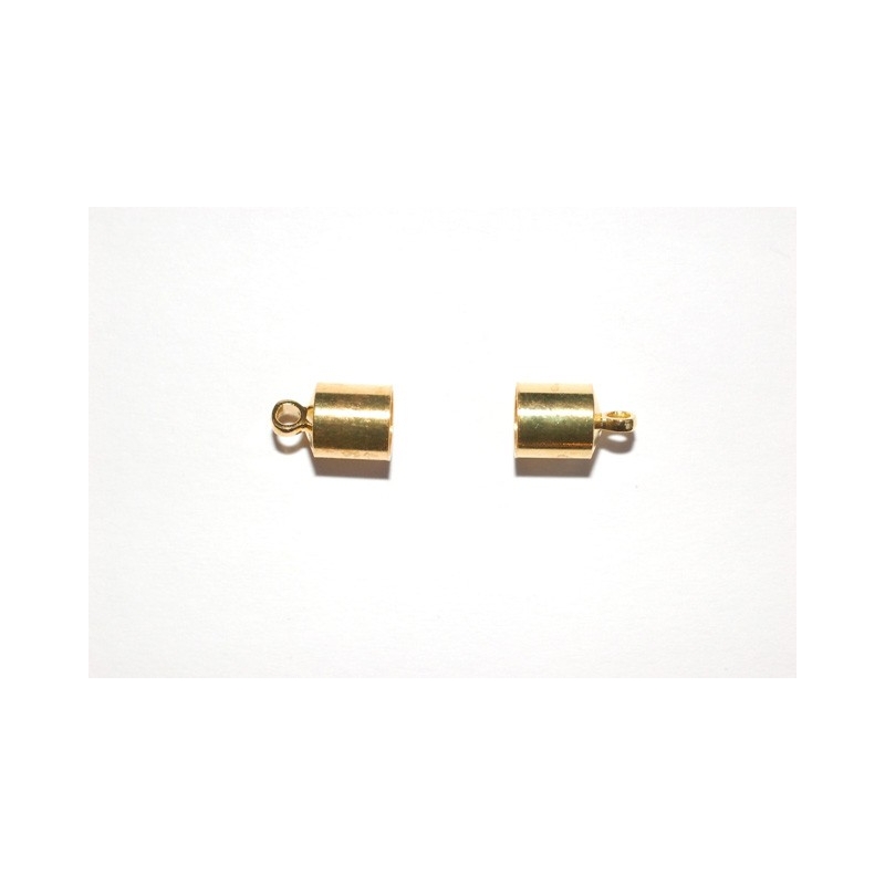 Guldfarvede endedupper - passer til vores 5 mm. lædersnor. Str.: ca. 10 x 6 mm. Indvendigt mål: 5,2 mm. Prisen er for 10 stk.