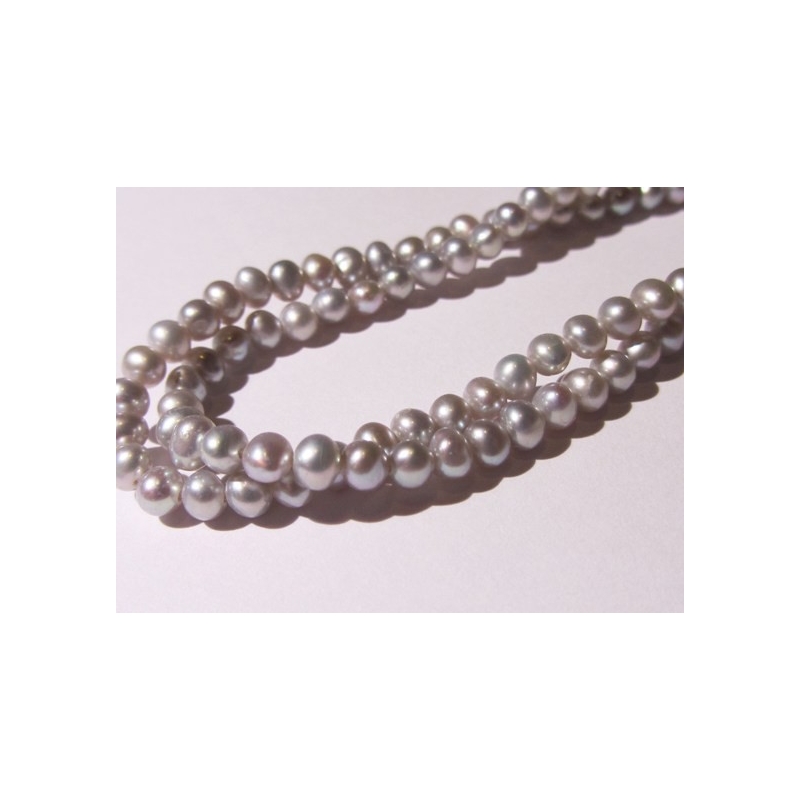 Barokke ferskvandsperler - grå. Str. omkring 5-6 mm. Hul str. ca. 0,7 mm. Prisen er for 10 stk.