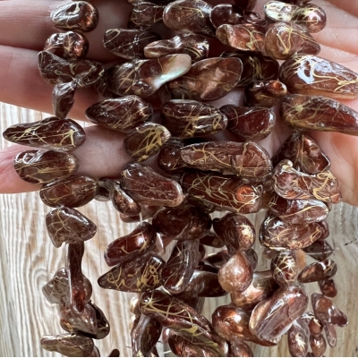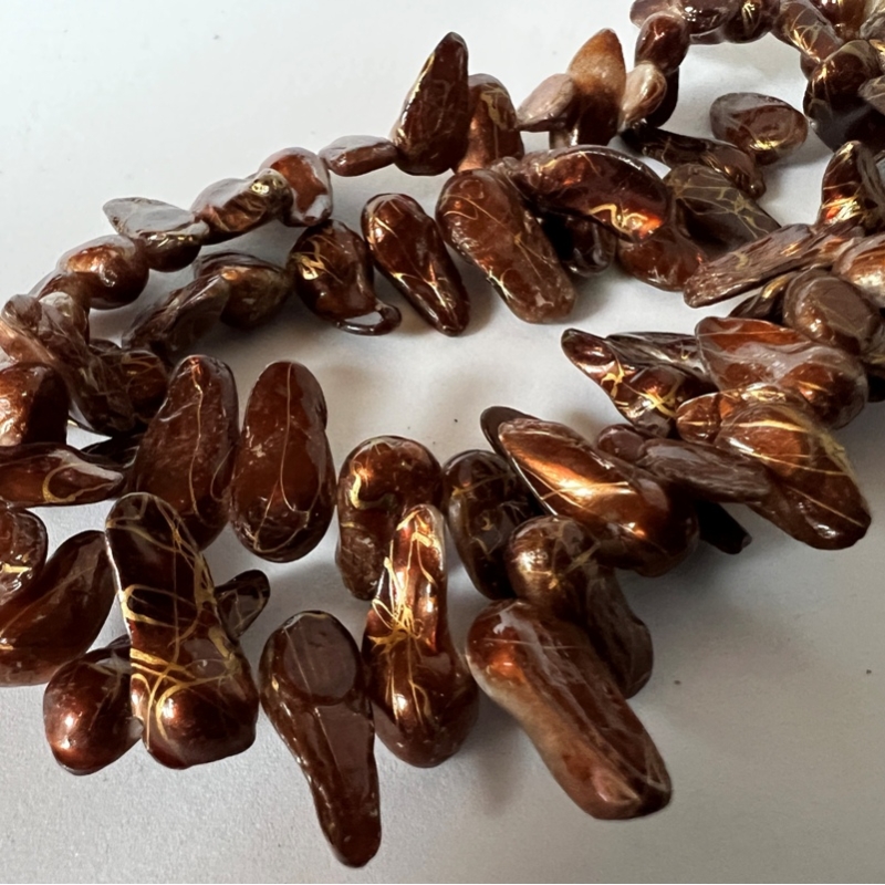 Tooth af barokke ferskvandsperler - mokka mønster farvet.