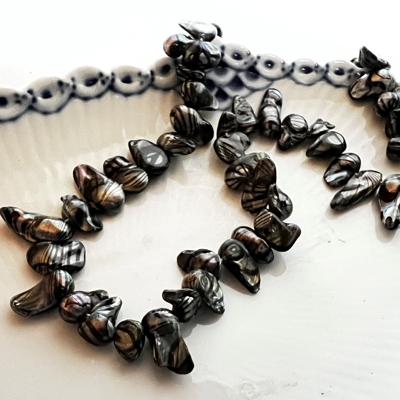 Tooth af barokke ferskvandsperler - sort mønster farvet.