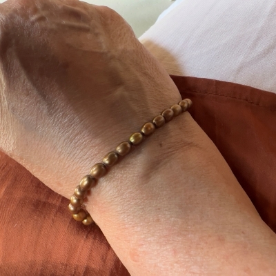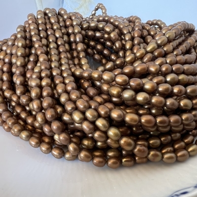 Ovale (riskorn) kaffefarvede ferskvandsperler.