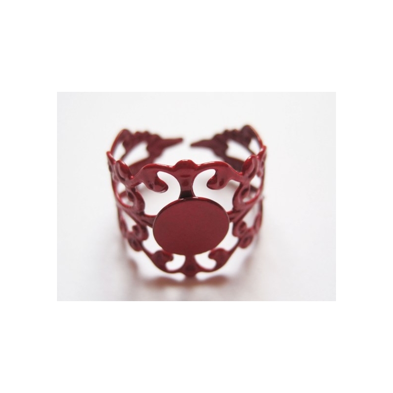 Fingerring med plade - rød emalje - justerbar størrelse.
