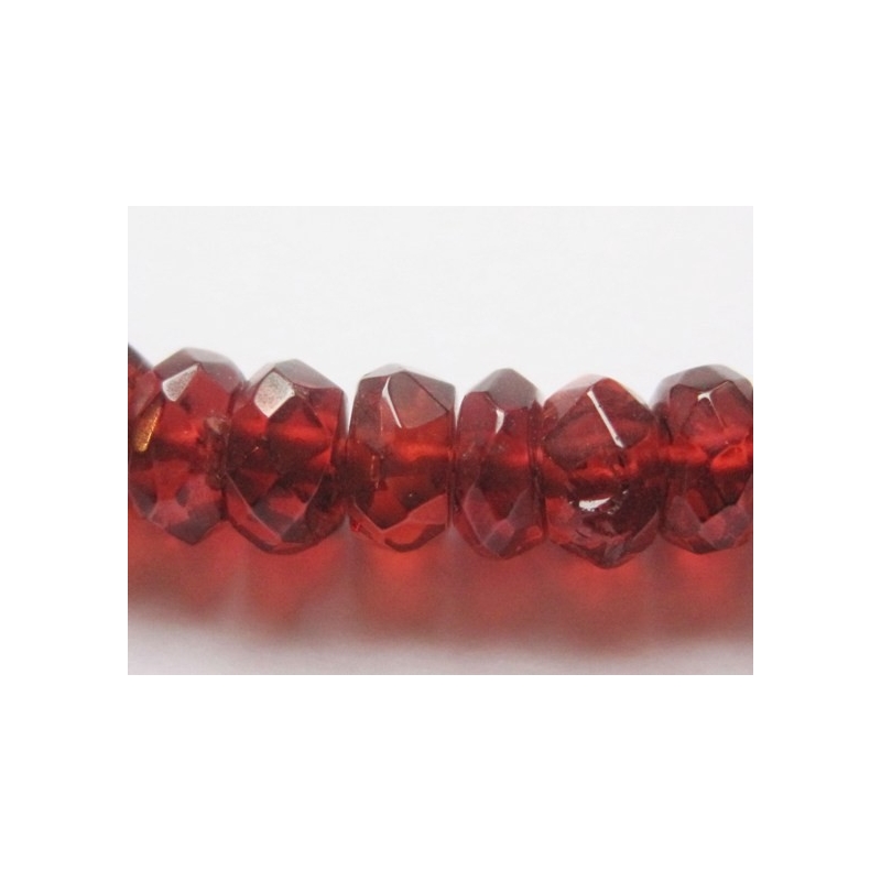 Facetslebne perler af garnet. Bemærk at de er håndlavede, så de vil derfor ikke være ens. Str.: ca. 2-3 x 5 mm. Hulstr.: ca. 0,5 mm. Antal på streng: ca. 130 stk. Prisen er for 1 streng.